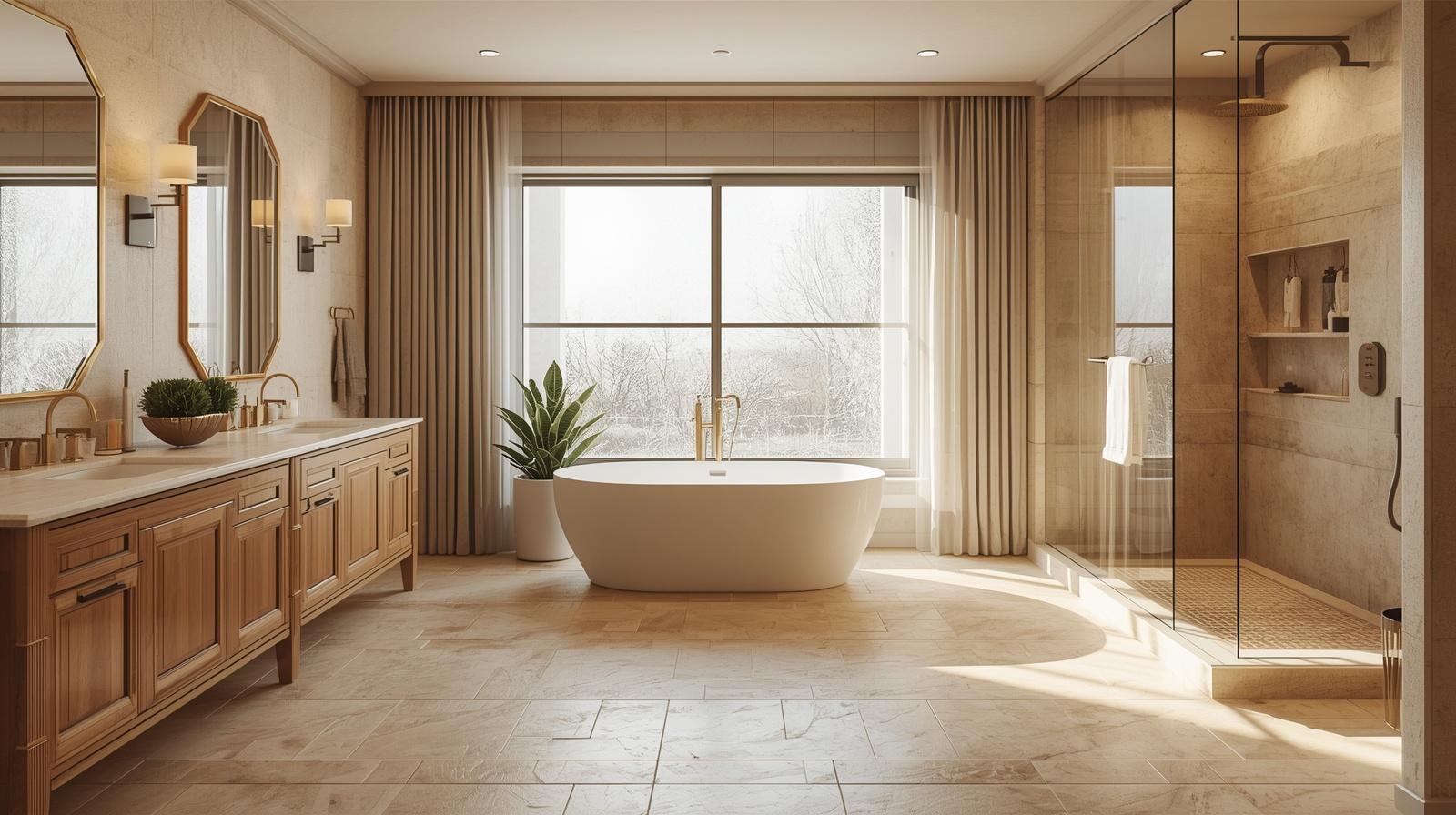 Positioning a freestanding soaking tub directly in front of the master bathroom window creates a bathing experience of extraordinary sensory pleasure and visual drama that transforms the most indulgent room in the home into a genuine daily sanctuary of restorative beauty. The combination of warm water, natural light streaming across the tub surface, and the view of garden, sky, or landscape beyond the glass creates a bathing environment of such complete luxury that it justifies the entire design investment of the master bathroom in a single, perfectly composed gesture of considered residential design.