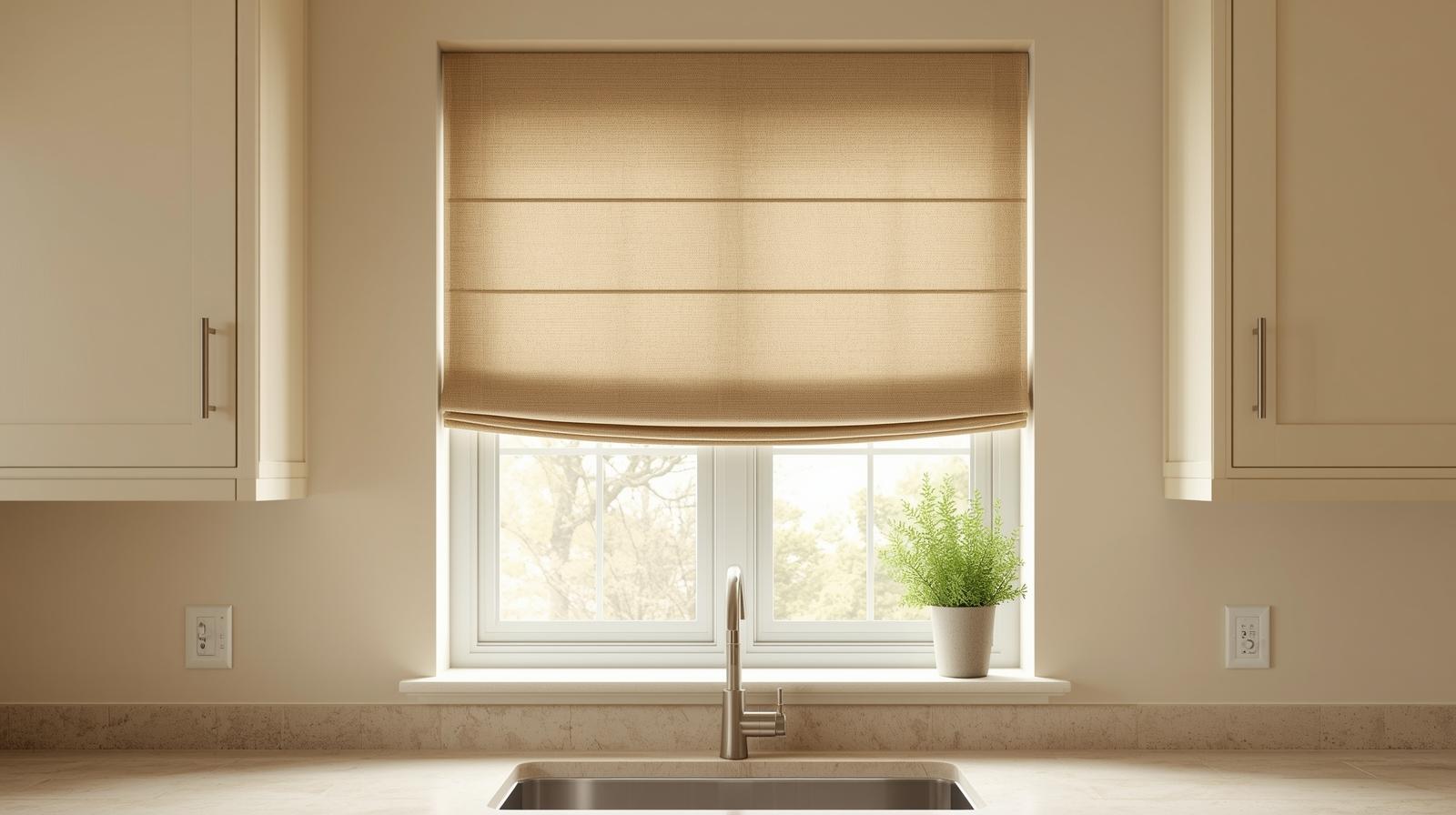 6. Linen Roman Blinds at the Kitchen Window