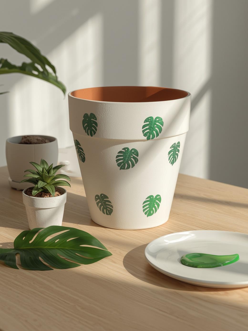 7. Monstera Leaf Print Pots