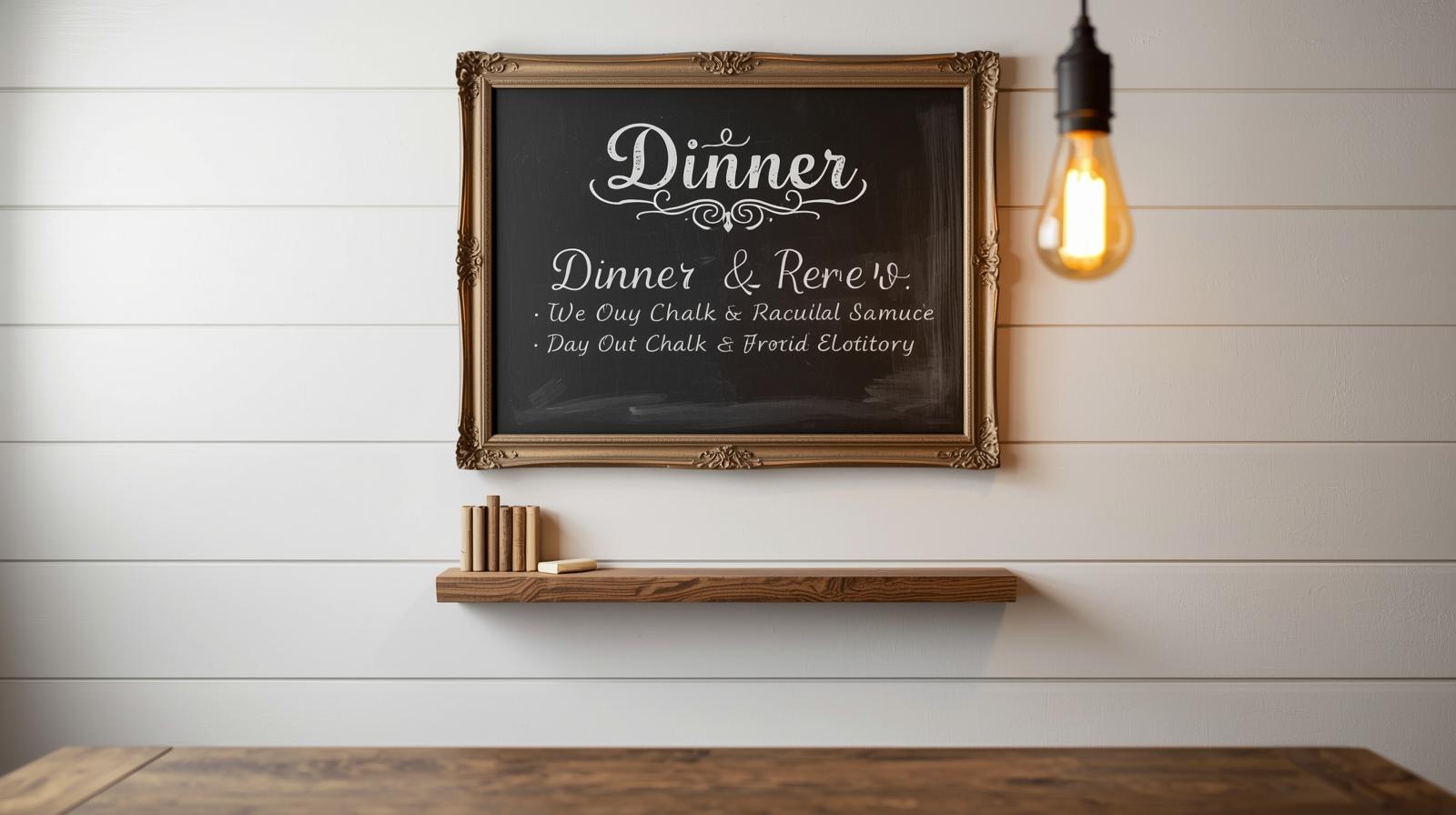 A framed chalkboard panel hung in the dining room becomes decor that changes with your life. Write the week’s dinner menu, a favorite quote, a seasonal greeting, or the date of a family celebration. The matte black surface contrasts beautifully against white or wood tones, and the constantly updated content makes the wall feel alive, personal, and genuinely part of daily home life.