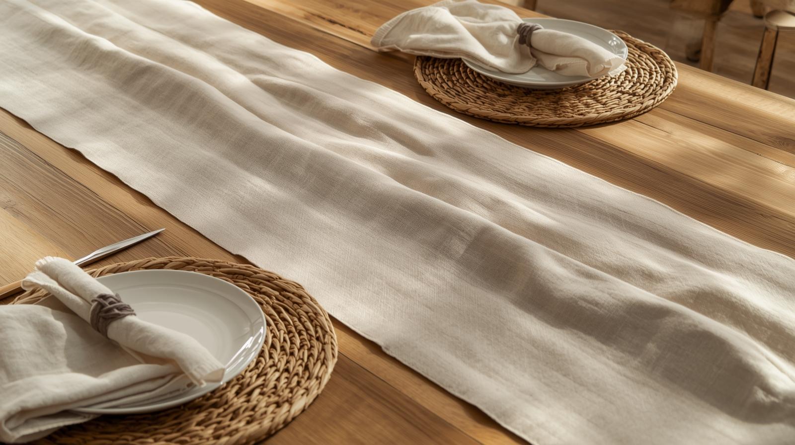 Texture is what separates a flat, forgettable room from a rich, layered one. In your farmhouse dining room, layer linen table runners, woven placemats, cotton napkins, and a jute rug underfoot. These natural textiles add tactile warmth and visual depth without adding color or clutter. They’re the quiet background details that make the whole room feel considered, intentional, and genuinely cozy.
