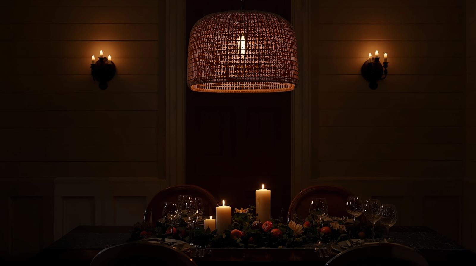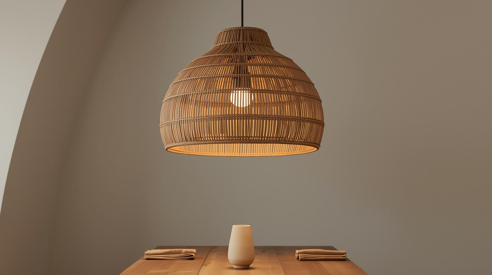 Lighting is the jewelry of a dining room. In a modern farmhouse space, a statement pendant light above the dining table is absolutely essential. Choose an oversized woven rattan pendant, a black metal cage light, or an industrial pulley-style fixture. Hang it low over the table — around 30 to 36 inches above — for an intimate, dramatic, perfectly proportioned effect.