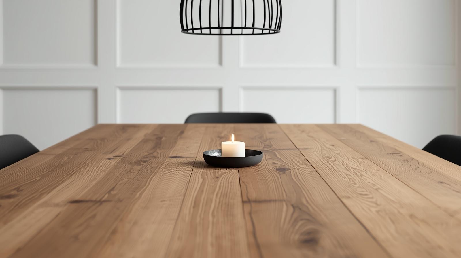 Modern farmhouse style lives in the contrast between materials. Pair your wood dining table with black matte metal pendant lights, iron candle holders, or metal-framed chairs. This mix of warm wood and cool metal creates a tension that feels intentional and sophisticated — the hallmark of truly well-executed modern farmhouse interior design done right.
