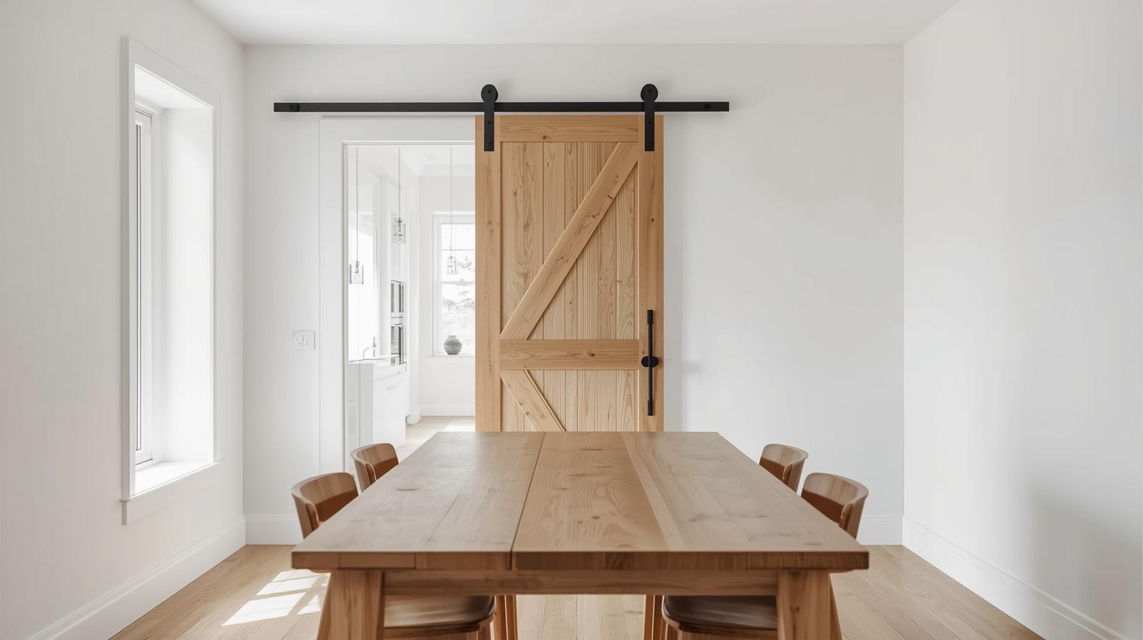 Nothing signals modern farmhouse style quite like a sliding barn door. Even in a dining room, a barn door leading to a pantry, kitchen, or hallway adds incredible architectural character and visual interest. Choose natural stained wood with black matte hardware for the most authentic and stylish result. It’s a functional design element that doubles as the room’s most memorable feature.