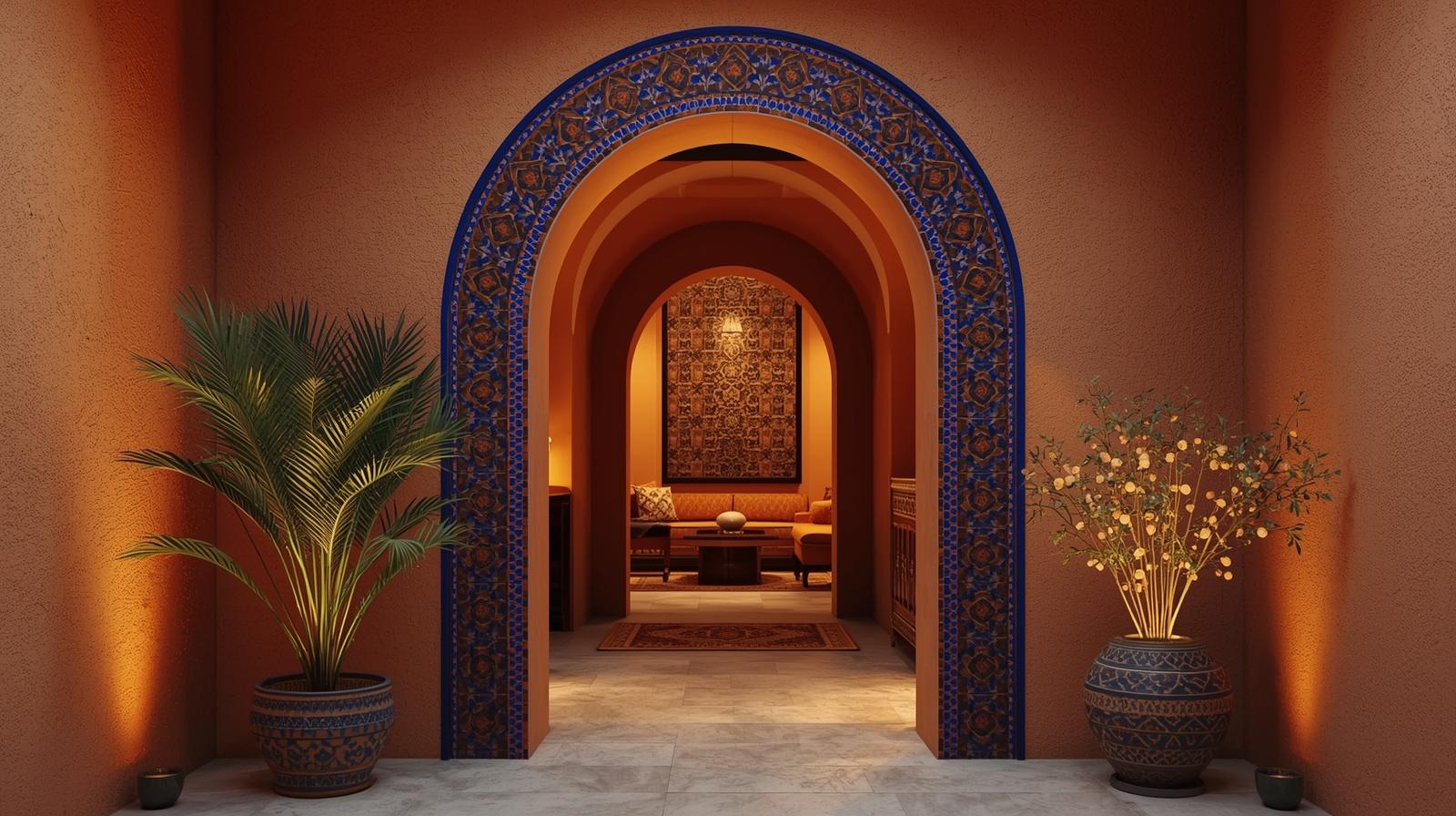 Framing arched internal doorways with intricate mosaic tile surrounds in geometric patterns referencing North and West African architectural traditions creates a series of decorative thresholds within the Afro-hemian interior that transform every passage from one room to another into a moment of genuine architectural beauty and cultural richness. Choose mosaic patterns in warm terracotta, deep cobalt, golden amber, and ivory for a color palette that draws from the rich tile traditions of Moroccan, Tunisian, and West African decorative architecture. The arched form with its mosaic surround creates a home of extraordinary visual character and cultural depth.