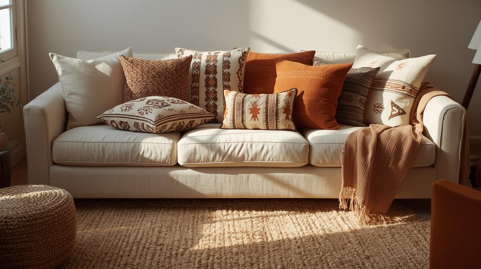 3. Mudcloth Throw Pillows in Earthy Tones