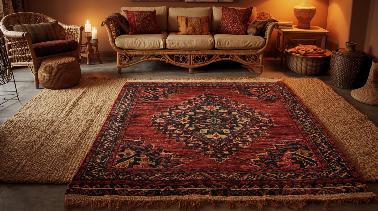 7. Layered Tribal and Geometric Rugs