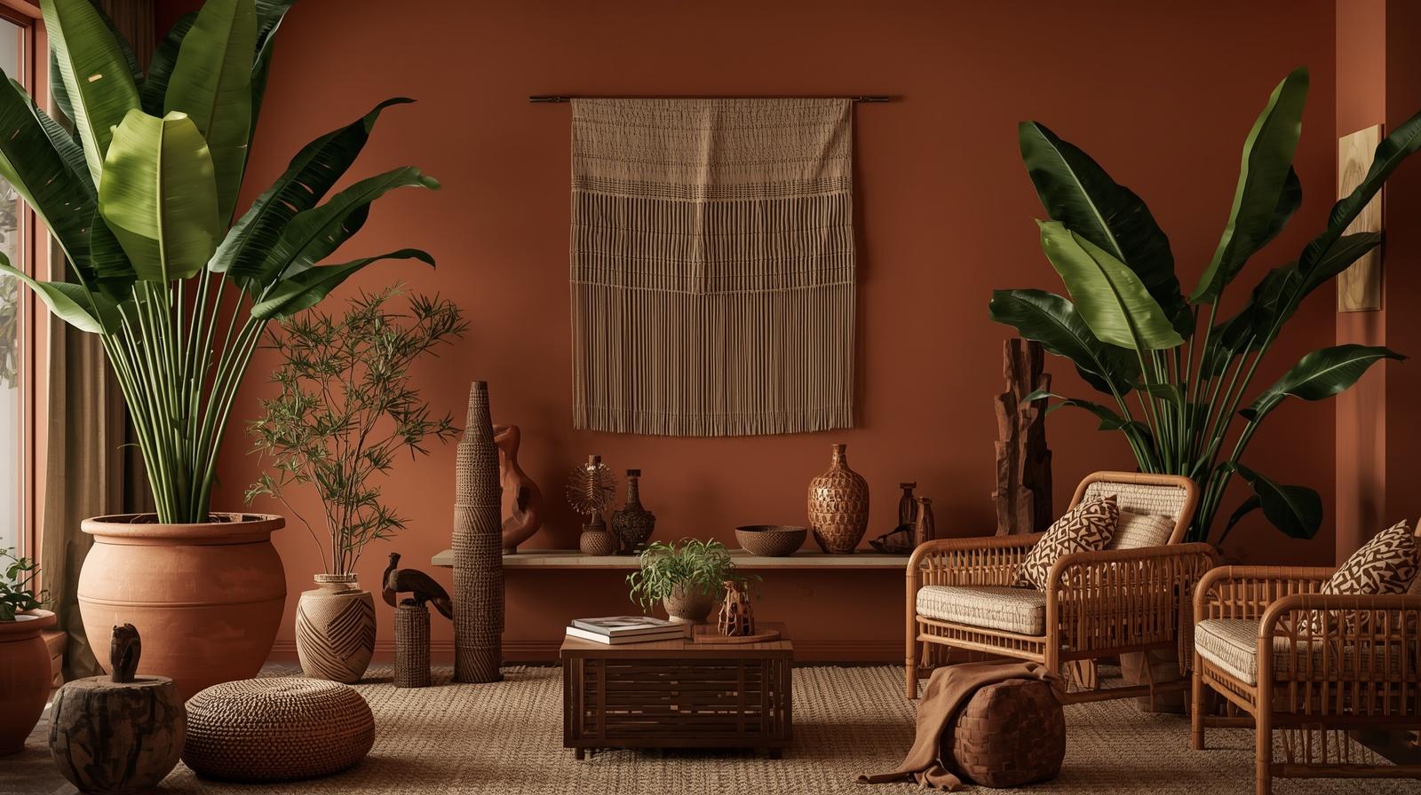 Painting the walls in deep terracotta, warm ochre, or rich burnt sienna creates an enveloping interior atmosphere of earthy warmth and sun baked richness that forms the perfect chromatic foundation for Afro-hemian decor. These colors reference the warm red soils, clay architecture, and golden landscapes of the African continent while functioning beautifully as sophisticated interior wall tones within a contemporary design context. The deep warmth of terracotta walls makes every natural material, woven textile, and wooden object within the space appear richer, warmer, and more vividly beautiful against the saturated backdrop.