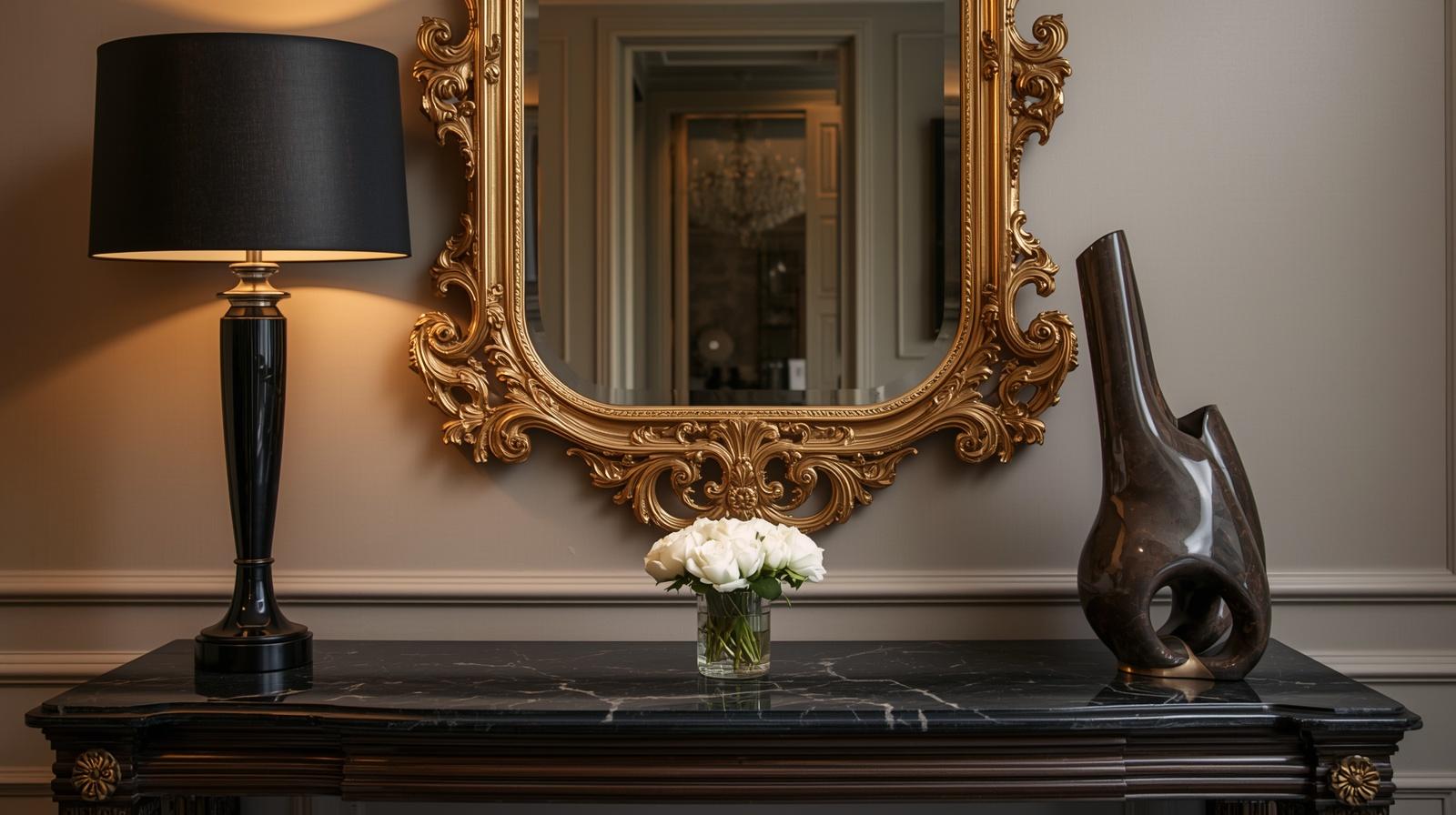 12. Use a Gilt-Framed Mirror Above a Dramatic Console