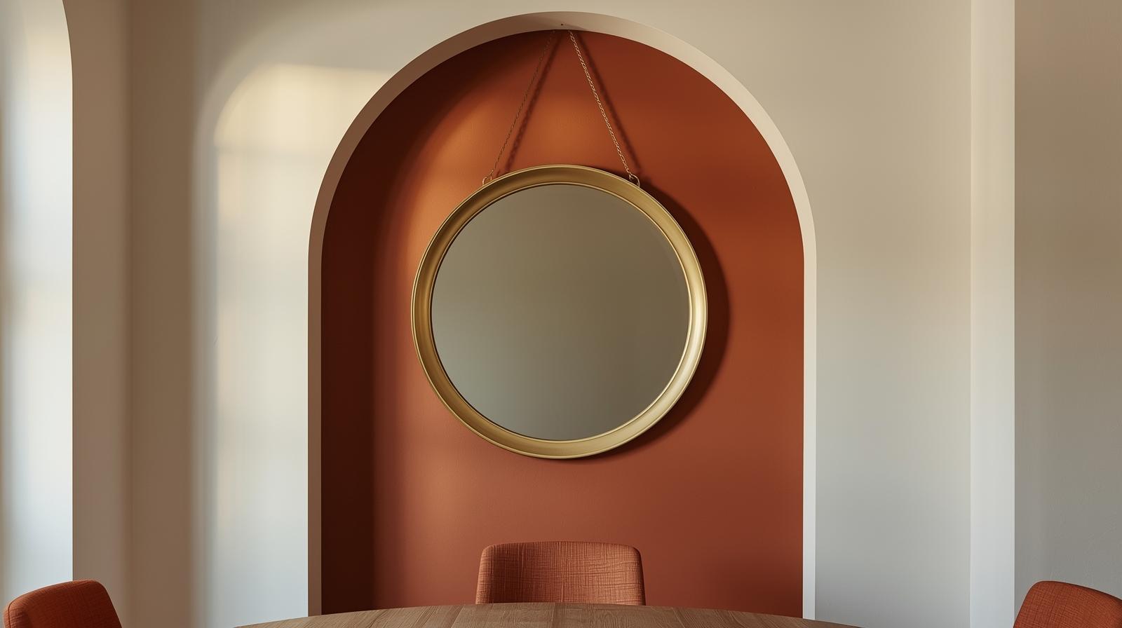 13. Hang a Round Mirror Inside a Decorative Wall Arch