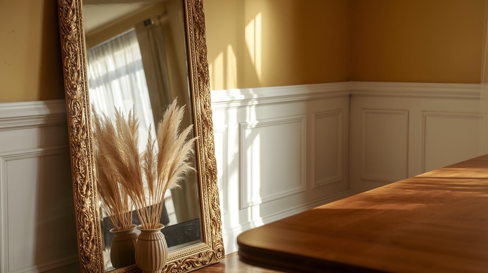 Leaning rather than hanging communicates effortless confidence in interior design. A floor-length oversized mirror leaned against a dining room wall — especially one with an ornate vintage frame or a sleek black profile — looks collected and intentional without a single nail hole. Style a small vase or sculptural object at its base to ground it and complete the casual-luxe vignette.