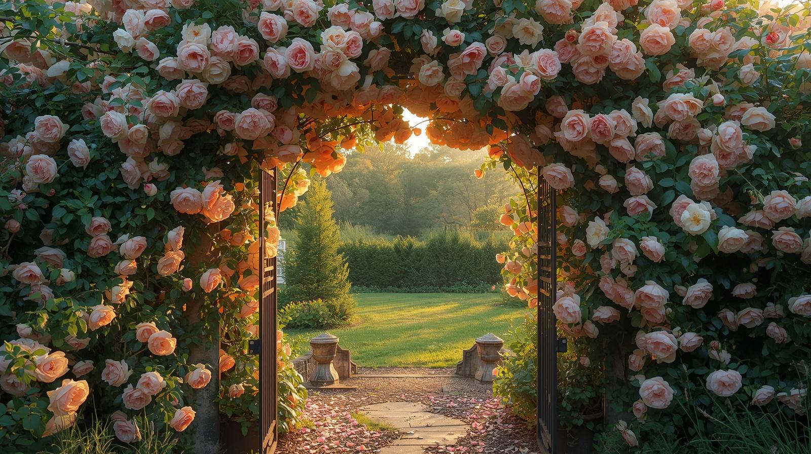 A garden archway smothered in tumbling roses is the defining romantic image of the cottage garden and one of the most breathtaking structural features any outdoor space can possess. Choose a weathered iron or rustic timber arch and plant a vigorous climbing variety on each side — soft blush, creamy white, or warm peachy apricot — allowing them to meet and intermingle overhead in a fragrant, flowering canopy. The arch creates a threshold between garden spaces that transforms the simple act of walking through into a genuinely enchanting moment of living beauty and extraordinary natural perfume.
