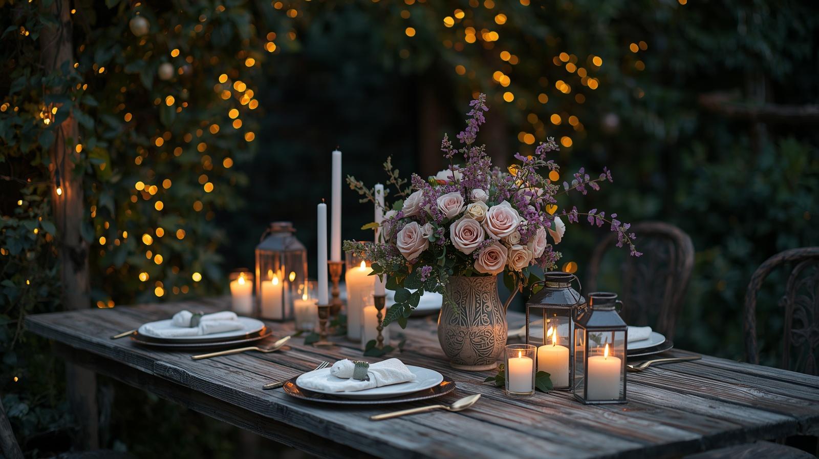 Styling a cottage garden table for evening entertaining with candles, lanterns, and soft floral arrangements transforms the outdoor dining space into a magical, intimate setting of extraordinary atmosphere and romantic beauty after sunset. Cluster pillar candles and tea lights in glass lanterns and votives down the center of a weathered timber table and add a loose arrangement of garden flowers in a ceramic jug as the centerpiece. Drape fairy lights through the surrounding foliage and overhead branches. The resulting garden table glows with a warmth and beauty that makes every evening meal feel like a genuinely enchanted occasion.