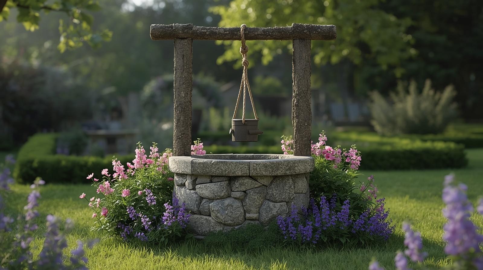 A genuine or carefully crafted replica stone well placed at the center of the cottage garden creates a romantic, storybook focal point of timeless character and considerable charm. The circular stone structure, wooden crossbar, and hanging bucket or rope evoke a deeply romantic vision of an older, simpler way of rural life that sits at the very heart of the cottagecore aesthetic. Surround the base of the well with a generous planting of cottage flowers — campanula, hardy geraniums, lady’s mantle, and sweet william — to integrate the structure naturally into the surrounding garden.