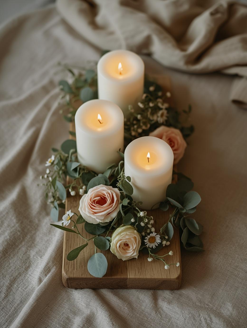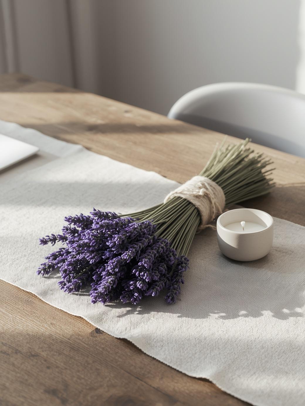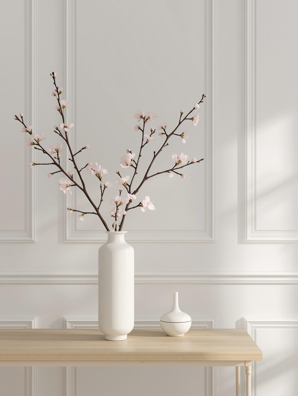 A single flowering branch, cherry blossom, forsythia, or quince, placed in a tall slim vase makes a breathtaking minimalist centerpiece. The negative space around the branch is part of the beauty. This Japanese-inspired approach to floral arranging celebrates simplicity and natural form. It works especially well on a console table, entryway, or dining table in a modern or Scandinavian-style home. Less truly is more with this elegant and easy centerpiece idea.