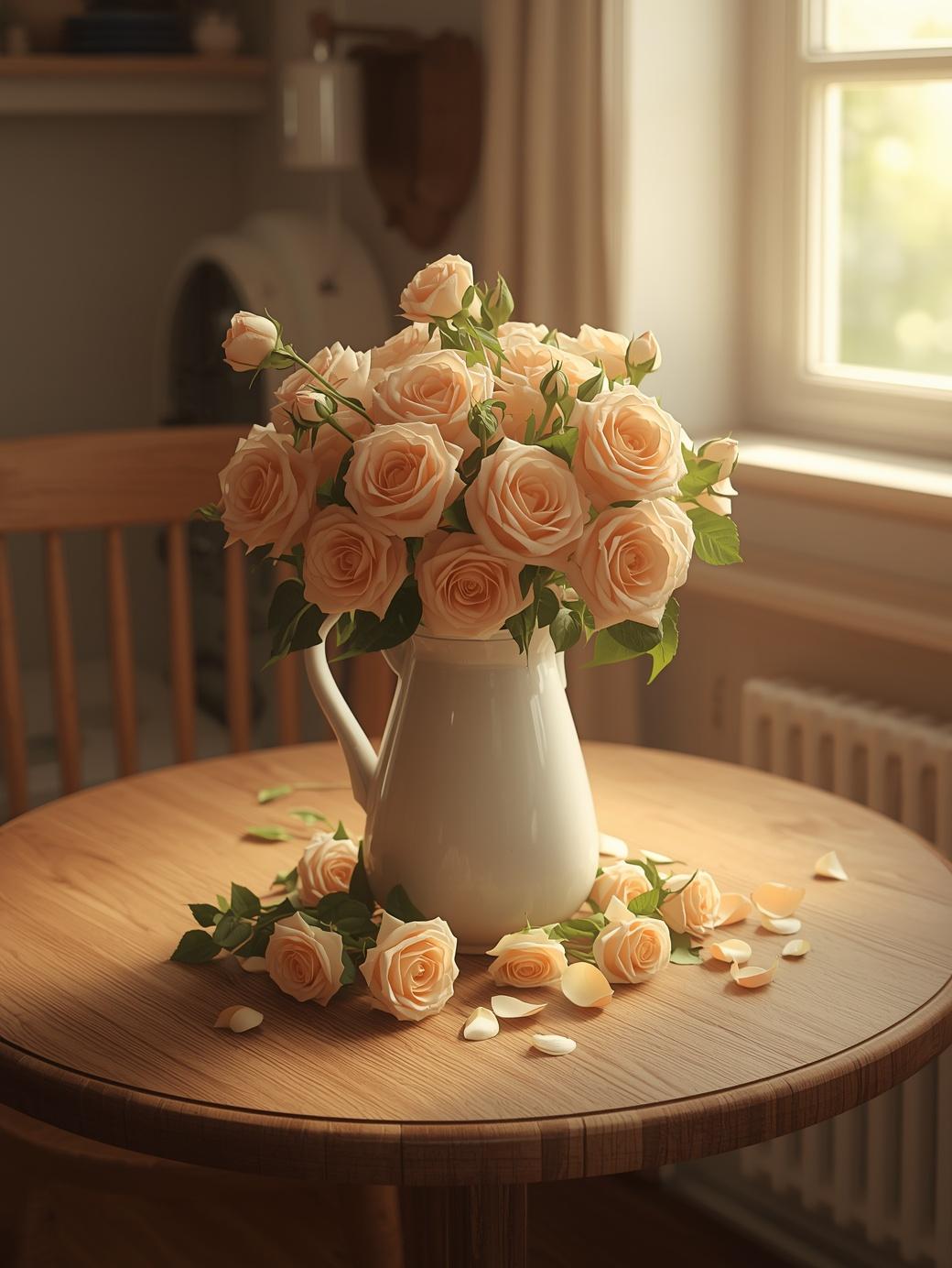 7. Garden Rose Centerpiece in a Vintage Pitcher