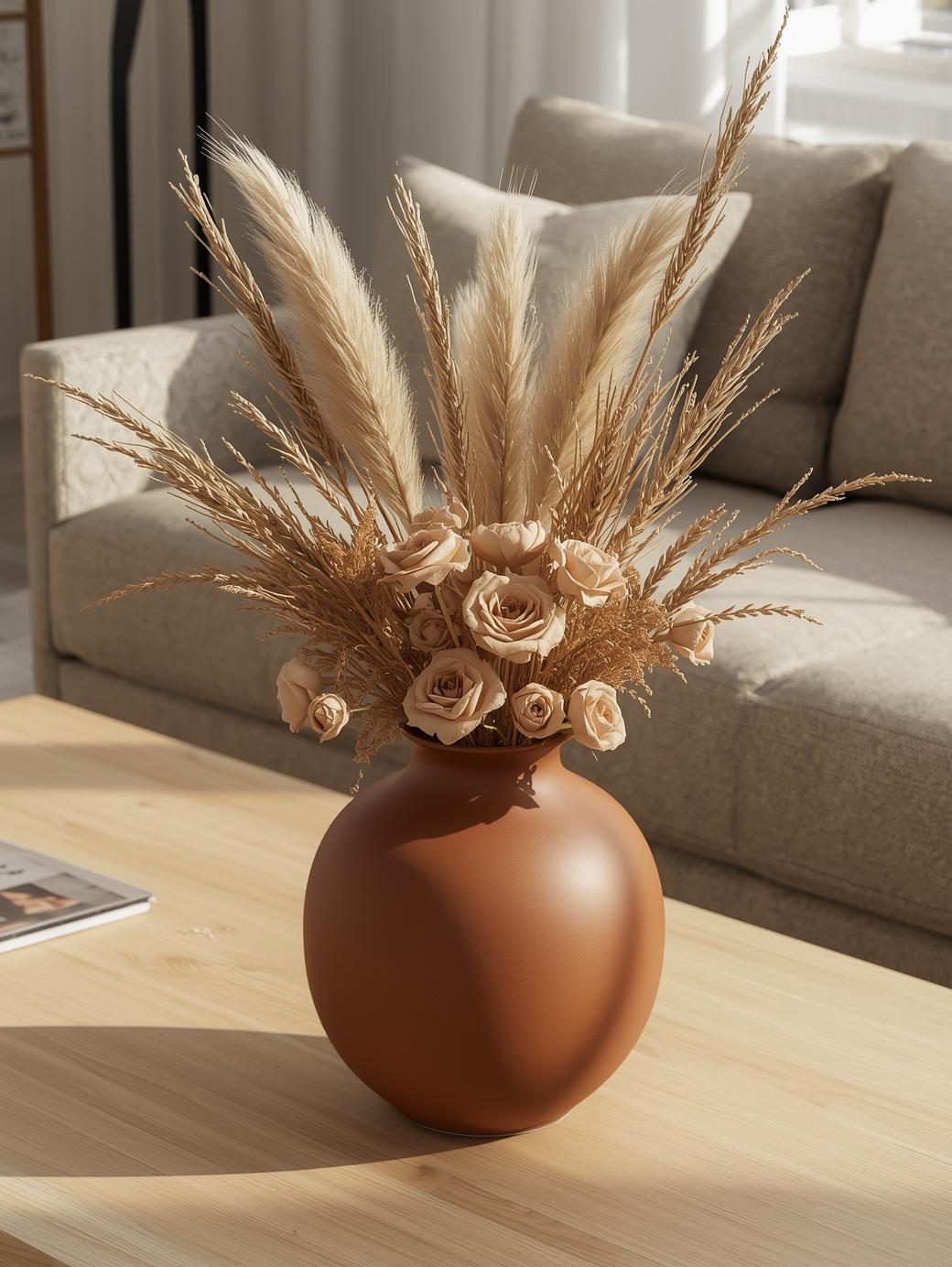 Dried flower centerpieces are having a huge moment in home decor right now and for good reason. They last for months, require zero maintenance, and look incredibly stylish. Arrange dried pampas grass, bunny tails, dried roses, and wheat stems in a textured terracotta or matte ceramic vase. The warm, neutral tones of dried florals complement almost any interior color scheme and add a soft, organic elegance to any surface.