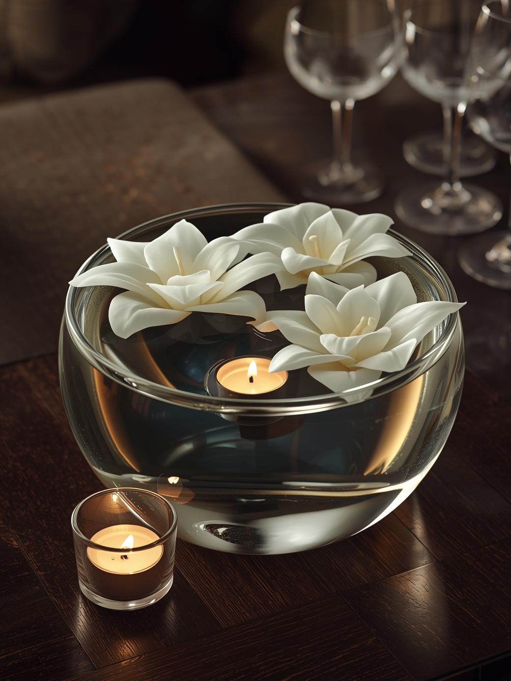 A floating flower centerpiece is simple, minimal, and absolutely stunning for a dinner table or coffee table. Fill a wide clear glass bowl with water and float open blooms on the surface, gardenias, camellias, or open roses work beautifully. Add a few floating tea light candles between the blooms for a magical evening effect. This is one of the most elegant flower centerpiece ideas that costs very little and takes only a few minutes to arrange.