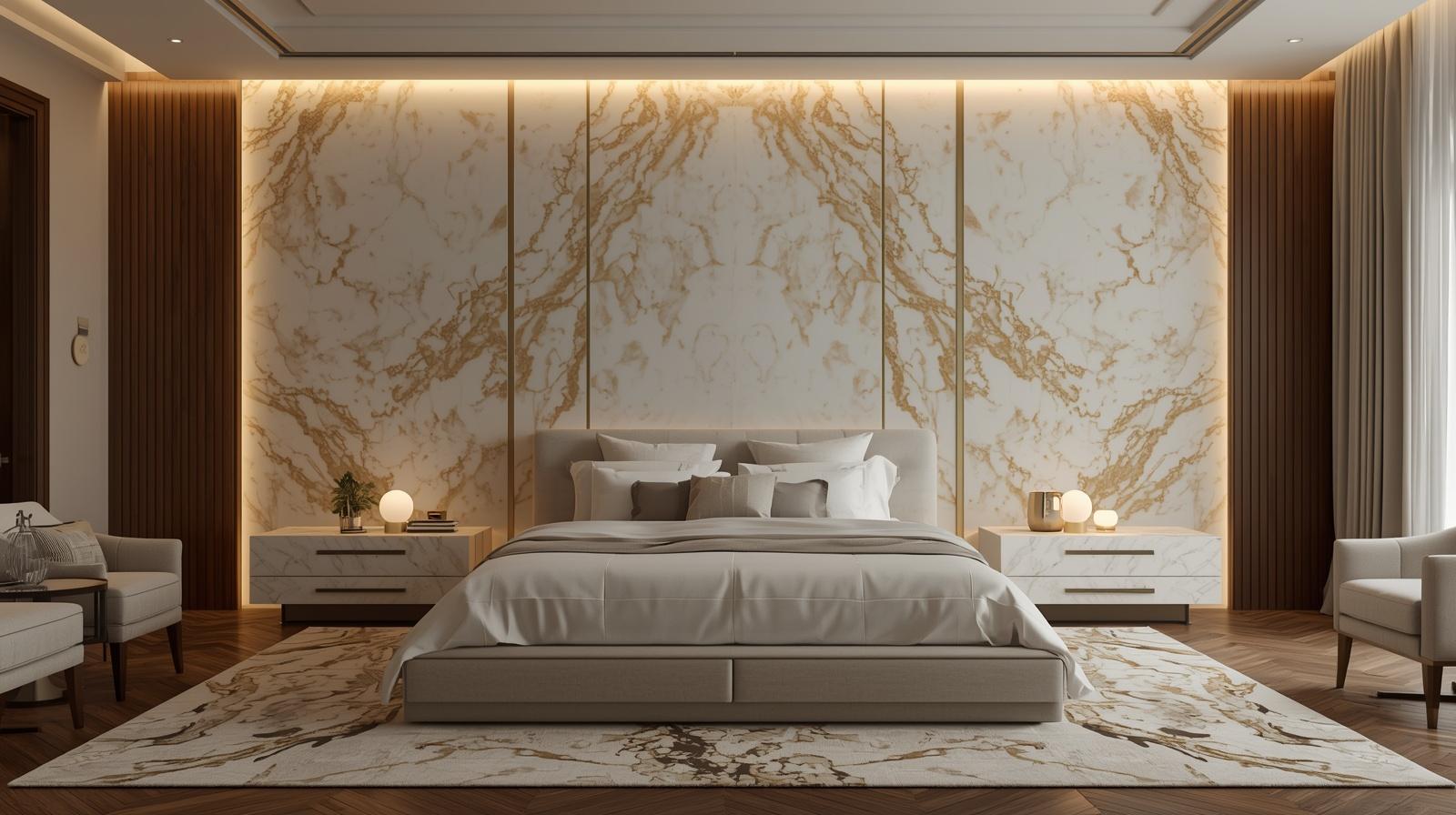3. Marble Feature Wall Behind the Bed