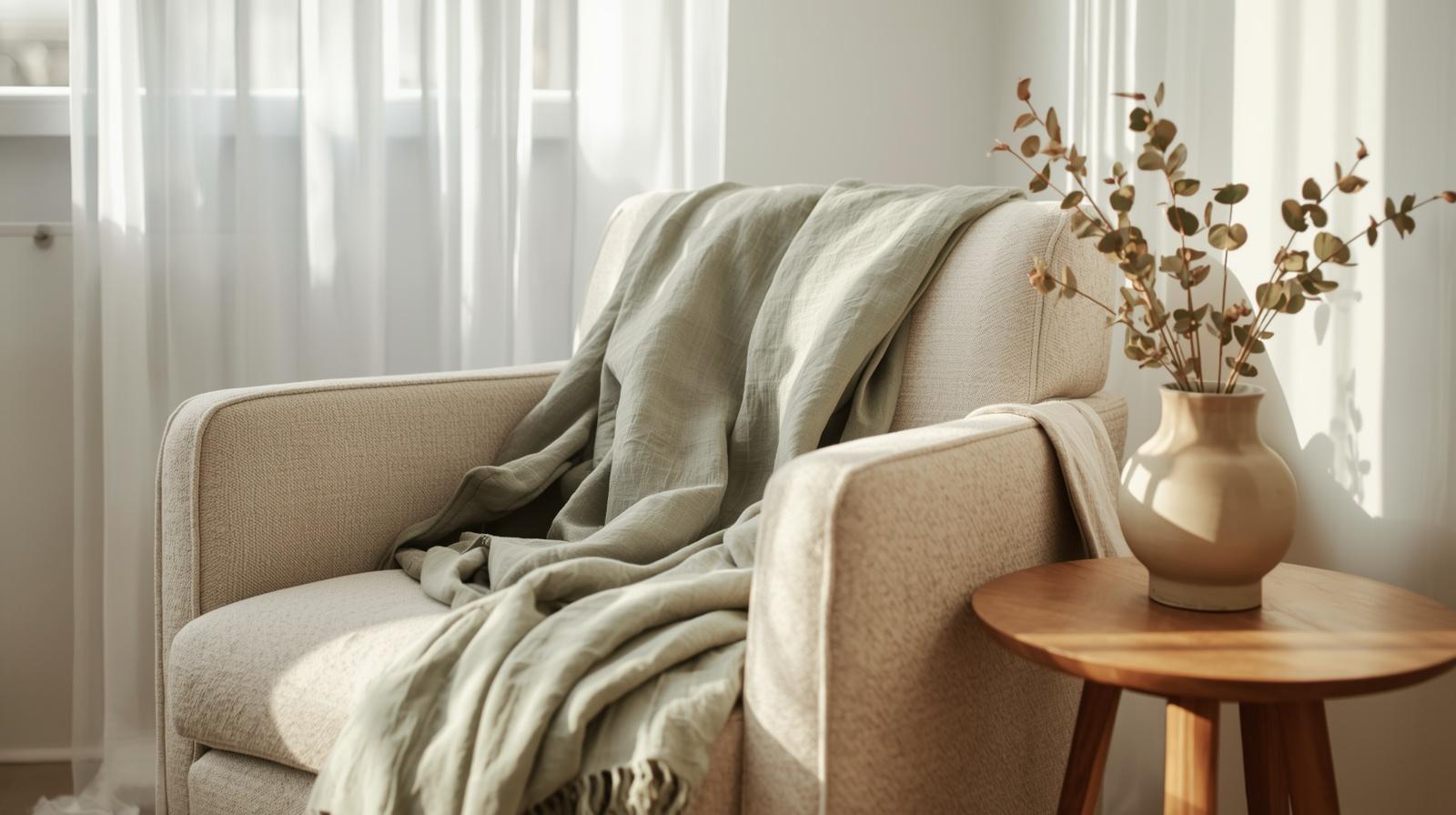 Swap out your heavy winter blankets for lightweight linen throws in sage green, dusty rose, or soft moss tones. Drape them loosely over armchairs or the foot of your bed for an effortlessly relaxed, seasonal feel. Linen’s natural texture adds warmth without visual heaviness, making your space feel breezy and inviting — the perfect bridge between cold and warm months.