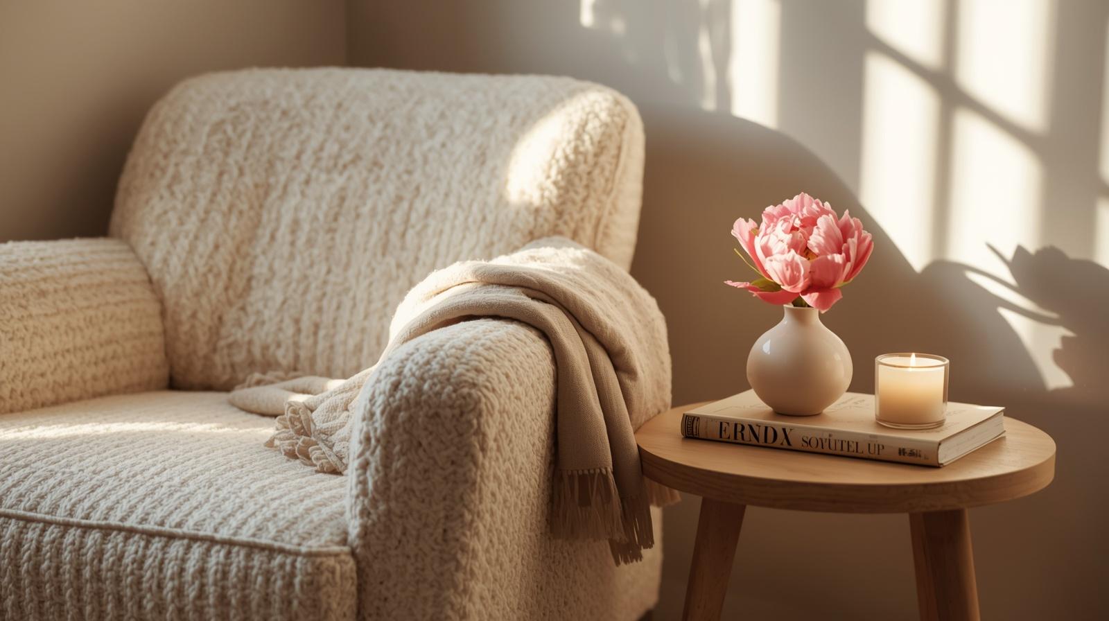 A reading nook in spring should feel like sitting inside a garden. Layer a cream boucle chair with a linen throw, add a side table with a single fresh flower in a bud vase, place a scented candle nearby, and stack two or three books with botanical covers. This multisensory corner invites slow living — a core cozy spring feeling worth designing for.