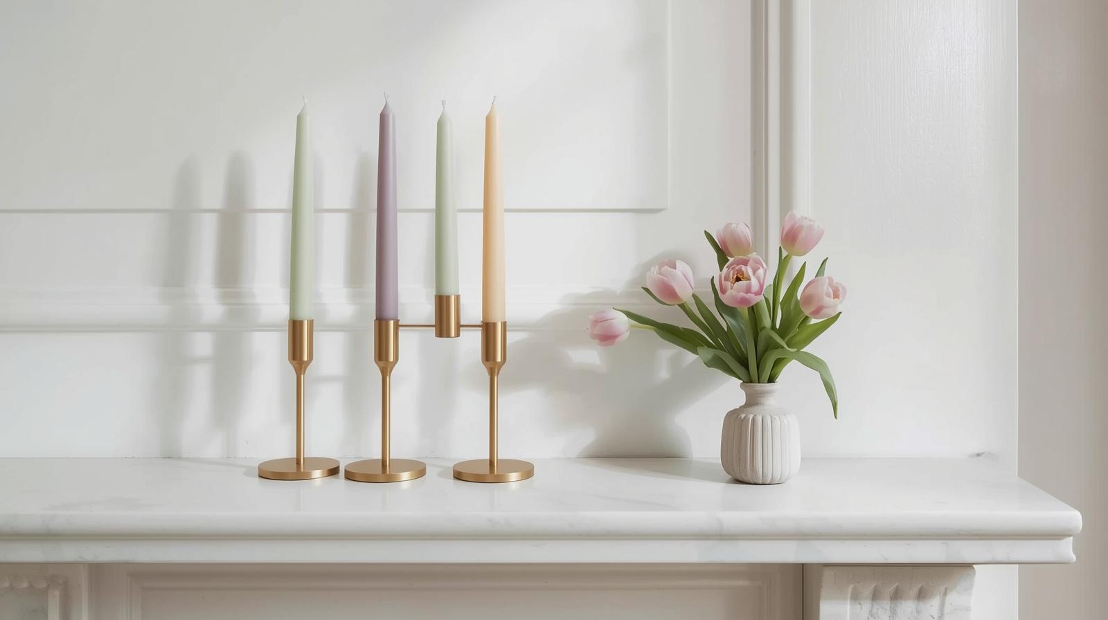 Candles are an underrated decor tool. For spring, transition from deep burgundy or charcoal winter candles to soft lilac, pale peach, and mint green pillar or taper candles. Grouped in varying heights on a mantle or shelf, they add a gentle pop of seasonal color. Even unlit, their color alone transforms the vibe of a styled surface.