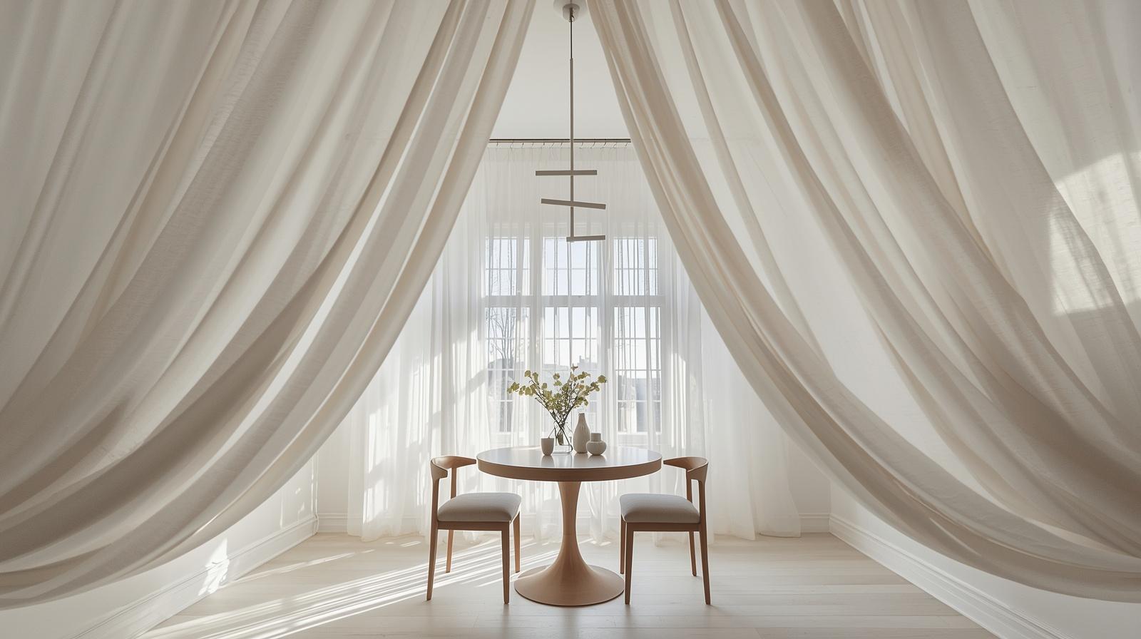 Hanging curtain rods close to the ceiling and extending them well beyond the window frame makes any small dining room feel taller and wider. This simple trick costs very little but dramatically changes how spacious the room feels. Choose sheer white or linen curtains that filter light softly rather than blocking it, keeping the space bright and open throughout the day.