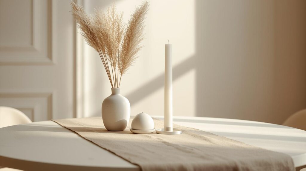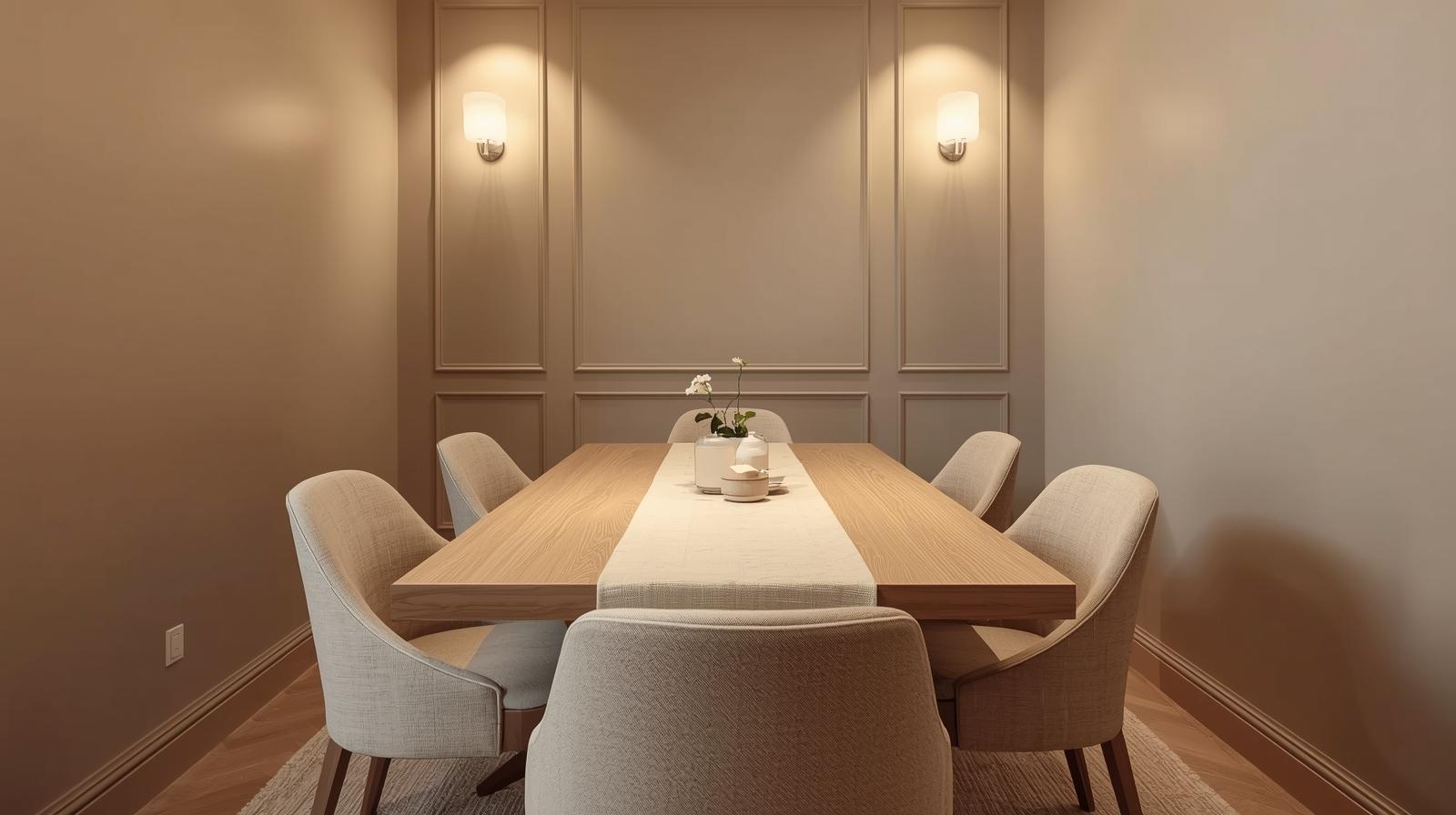 In a small dining room, table decor should be minimal but carefully chosen. A single ceramic vase with one stem, a small candle, and a linen table runner is all you need. Overcrowding the table with excessive decor makes the space feel smaller and impractical. Choose one hero piece and let it shine — simplicity always reads as sophistication in a small space.