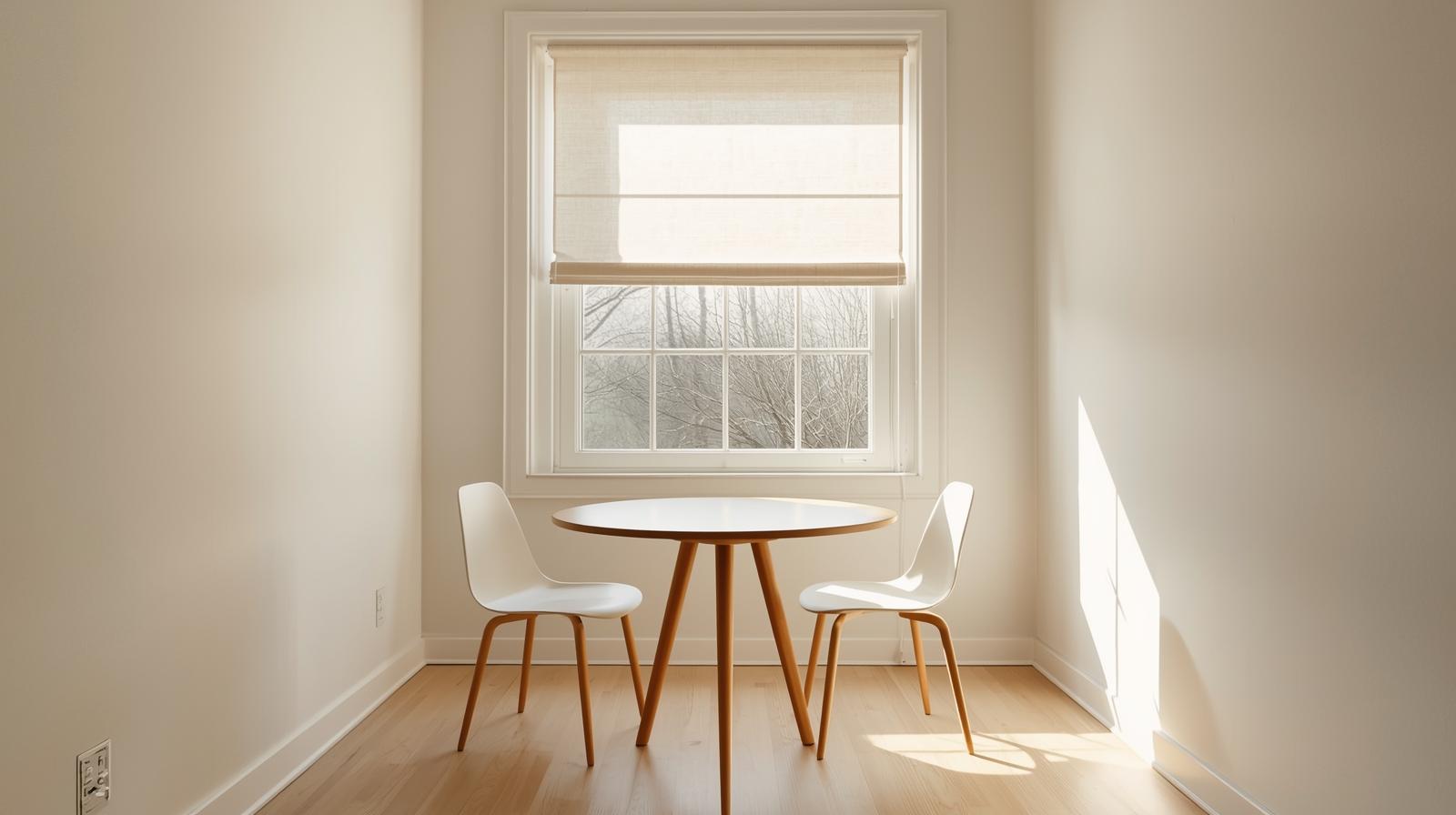 Natural light is the most powerful tool for making a small dining room feel open and spacious. Avoid heavy drapes or dark blinds that block precious daylight. Instead, opt for simple sheer panels, Roman shades in light linen, or leave windows completely bare if privacy allows. More light makes walls recede, ceilings feel higher, and the whole room breathe more freely.