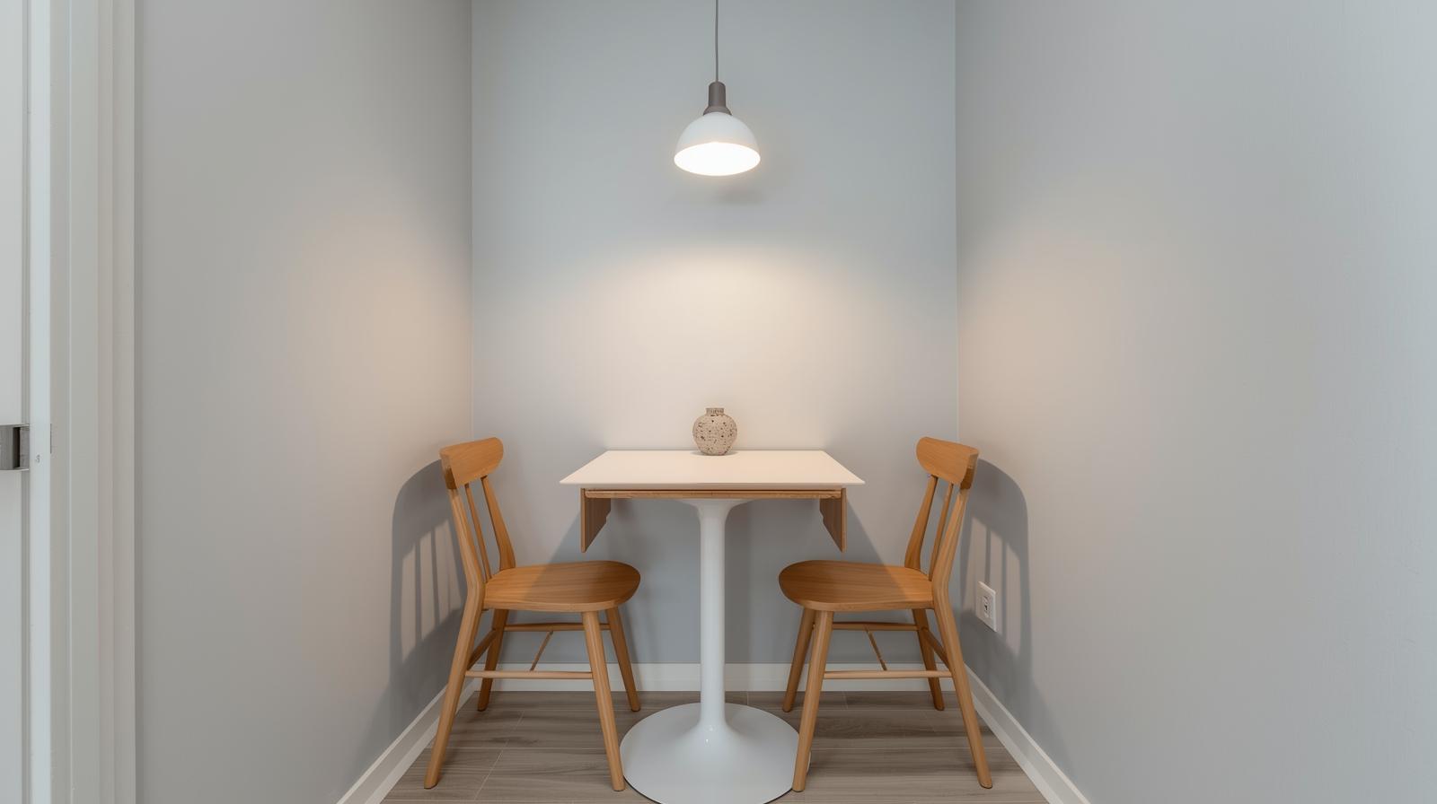 A foldable or drop-leaf dining table is a game-changer for very small dining rooms or dining nooks. Keep the leaves folded down daily to free up floor space, then expand when guests arrive. Paired with stackable or folding chairs stored nearby, this setup gives you a full dining experience without permanently sacrificing square footage in your home.