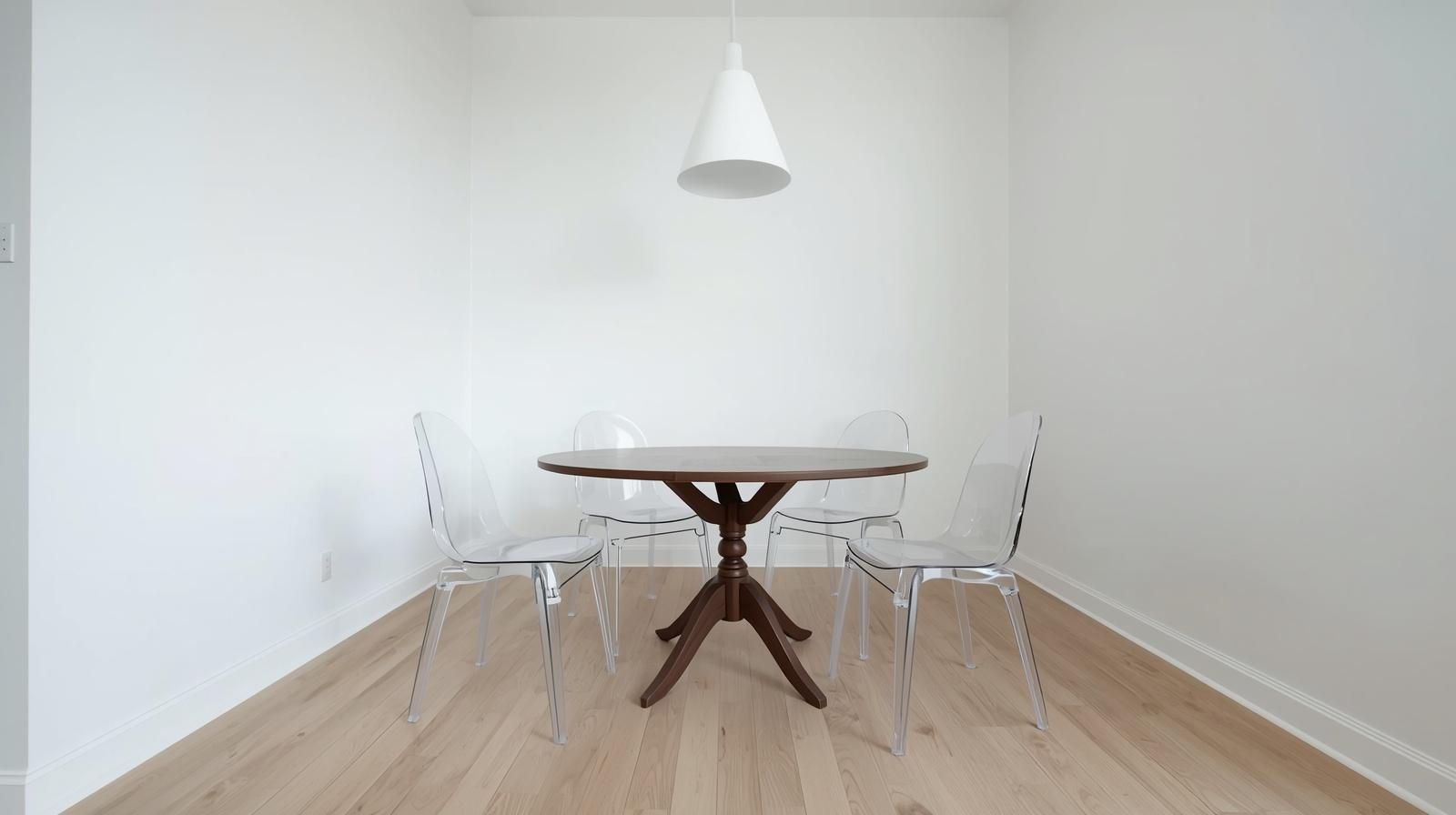 Clear acrylic ghost chairs are one of the smartest choices for small dining rooms because they take up physical space without taking up visual space. The transparent material allows the eye to travel straight through them, keeping the room feeling open and uncluttered. They suit any decor style from modern to eclectic and pair beautifully with both dark and light dining tables.