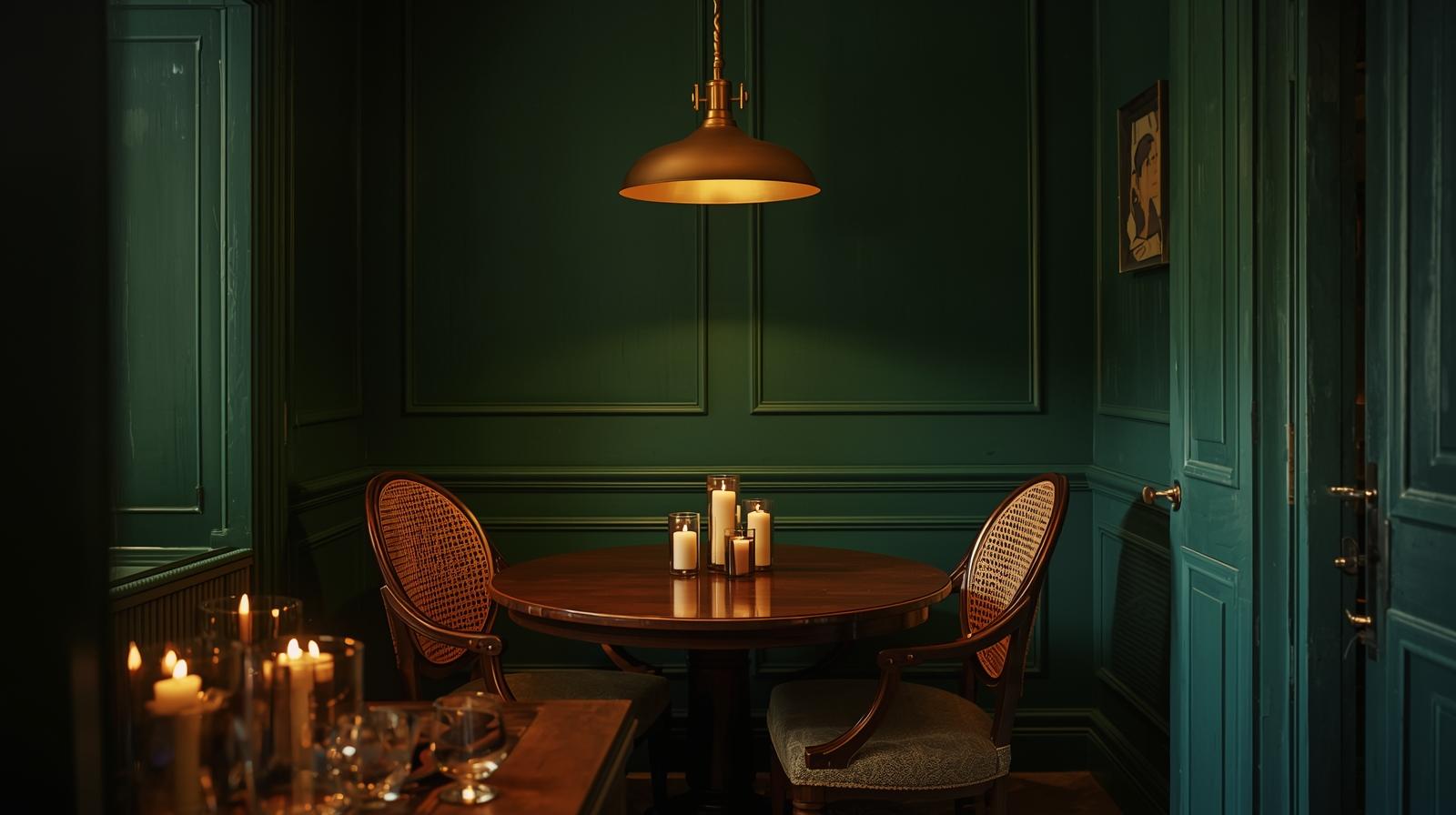 Counterintuitively, painting a small dining room in a deep moody color like navy, forest green, or charcoal can make the space feel more intimate and intentional rather than smaller. Dark walls create a cozy enveloping atmosphere that makes the room feel like a destination. Pair with warm lighting and brass accents to keep it feeling rich rather than heavy.