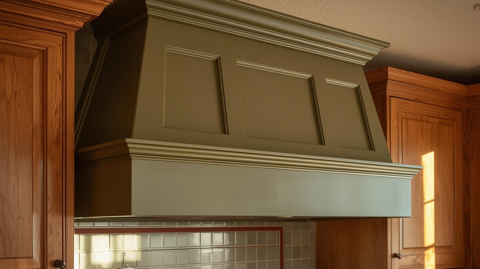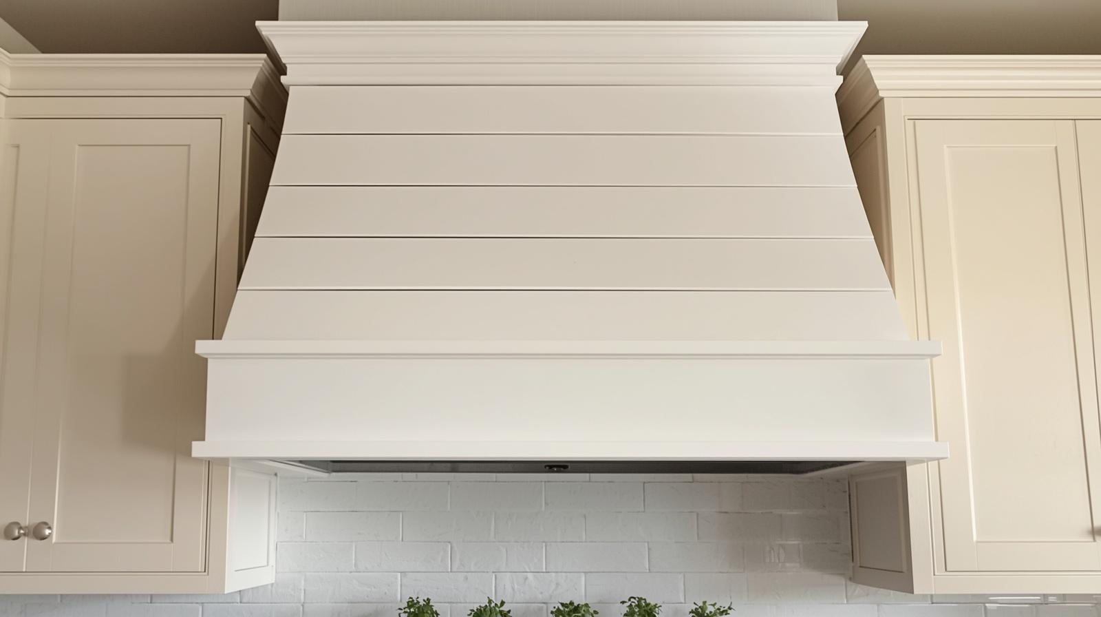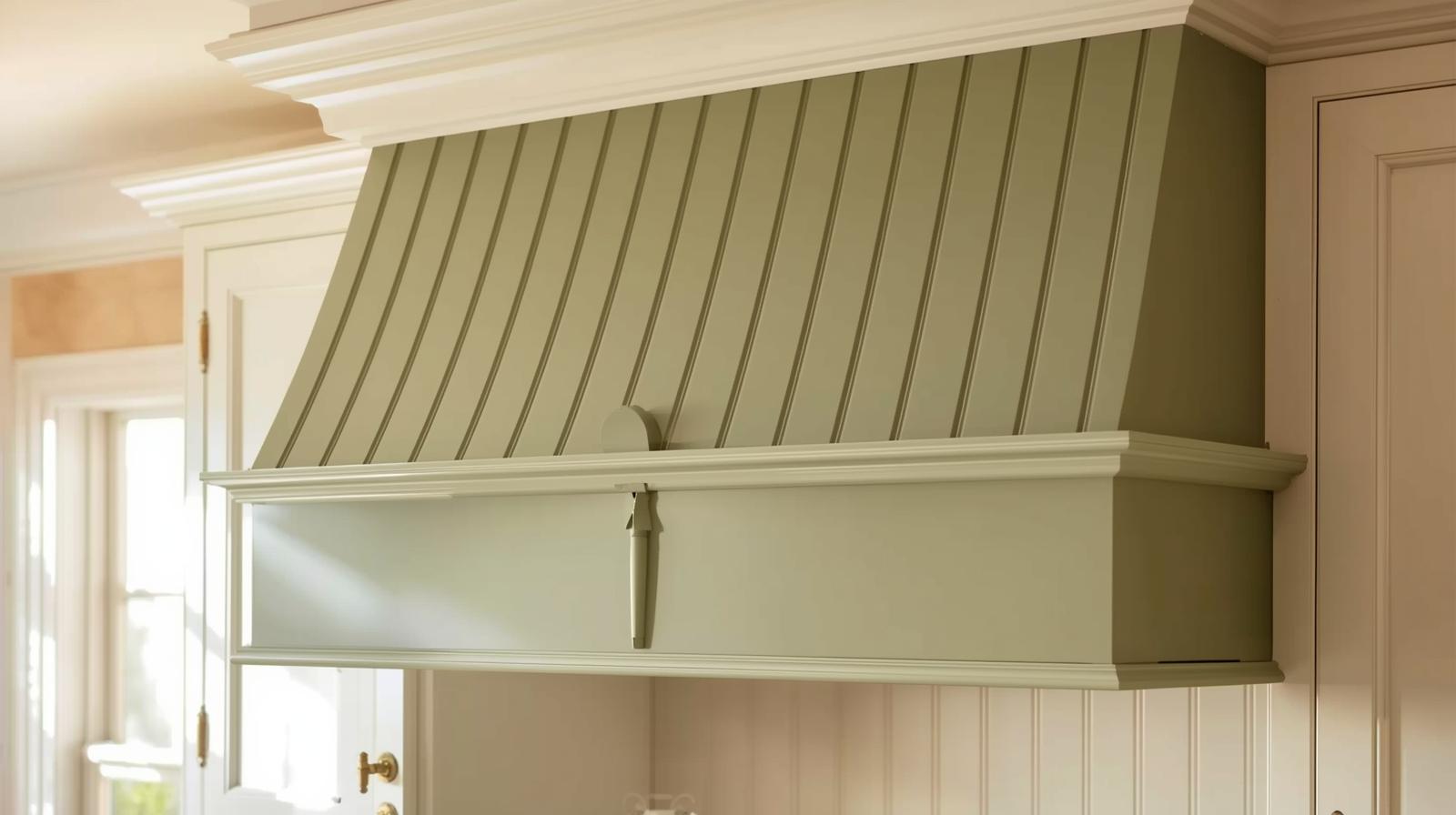 Beadboard panels on a vent hood cover bring charming cottage character to any kitchen. The vertical grooves of beadboard add subtle texture without being overwhelming. Paint it soft sage green or duck egg blue for a color-forward design statement. Crown molding at the top ties the whole look together and gives it a truly custom, furniture-like finish.