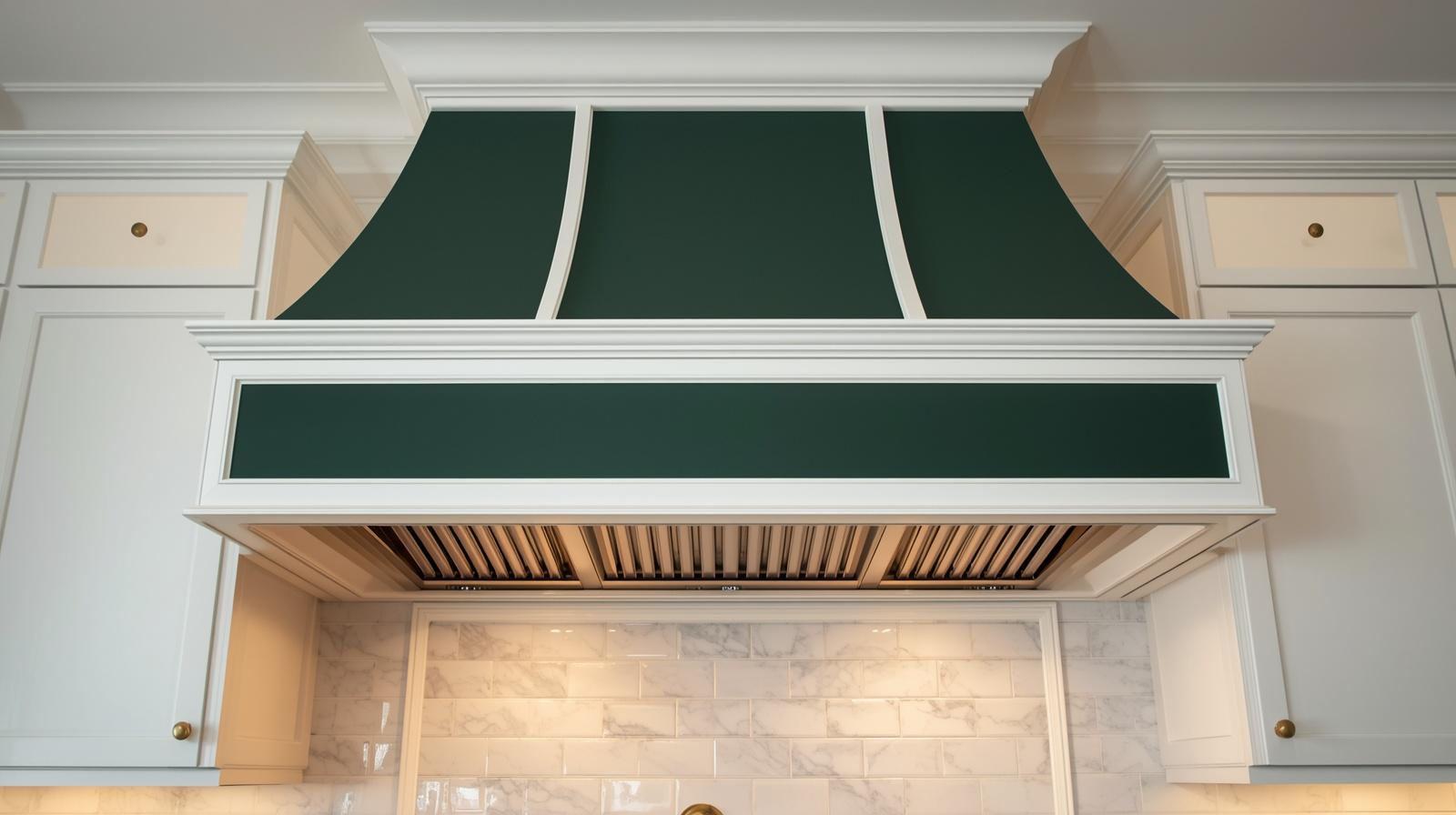 A two-tone vent hood cover uses one color for the body and another for the trim or molding detail, creating eye-catching visual depth. For example, a navy body with white crown molding or a forest green panel with cream trim looks incredibly sophisticated. This technique draws the eye upward and frames the stove as a true design focal point.
