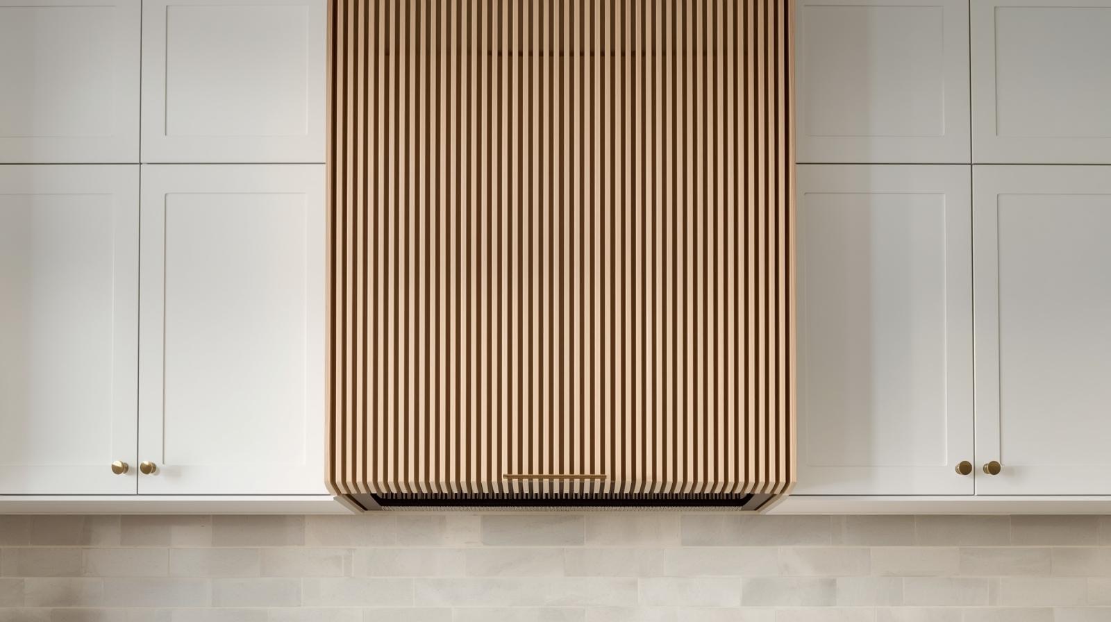 15. Vertical Slat Vent Hood Cover for a Japandi Kitchen