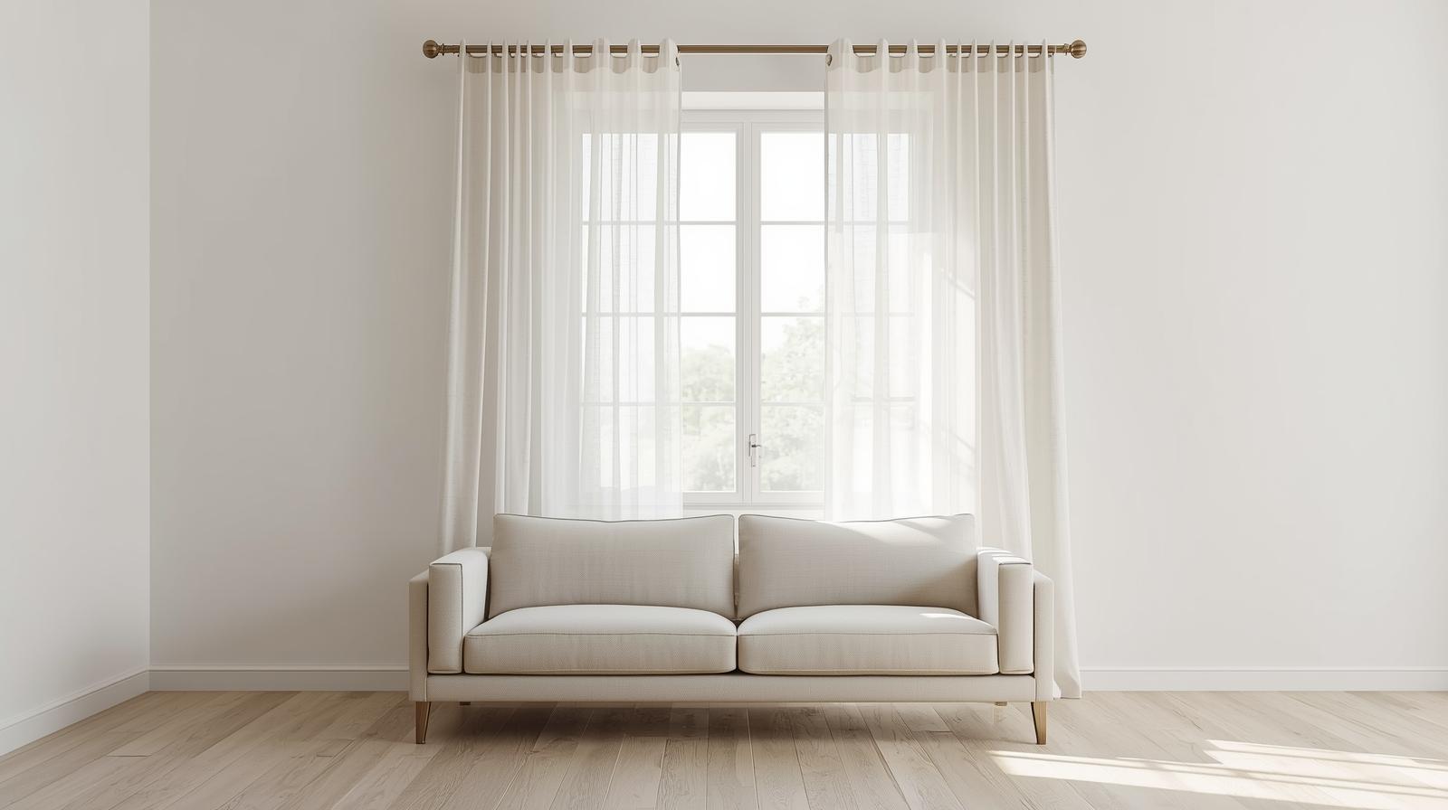 Hanging floor-to-ceiling curtain panels on the wall directly behind the sofa — even without a window — creates the powerful illusion of height, depth, and grandeur in a small living room. Choose sheer linen or lightweight cotton in soft white, ivory, or pale sage. Mount the rod as close to the ceiling as possible and allow the fabric to pool slightly at the floor. The