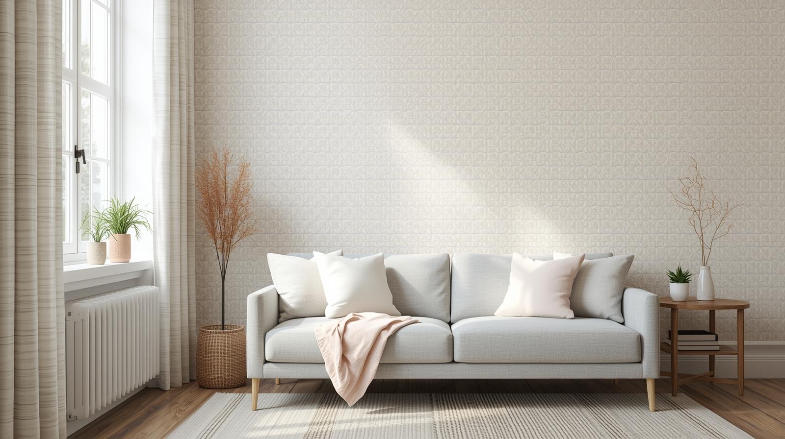 A single accent wall covered in soft geometric peel-and-stick wallpaper adds pattern and personality without shrinking the room. Choose designs with open lattice, thin line hexagons, or delicate diamond patterns in pale tones — white on white, light grey on cream, or soft gold on ivory. The subtle repeat pattern adds texture and depth to the wall while the light colorway keeps everything feeling open, airy, and visually expansive.