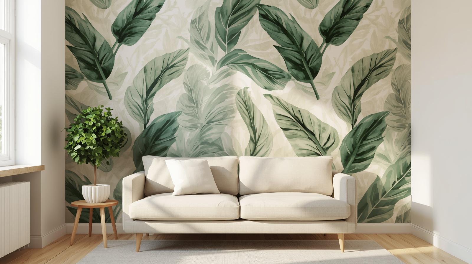 A single wall dressed in large-scale botanical print wallpaper brings the outdoors in and creates a lush, immersive backdrop that makes the room feel like it extends beyond its physical boundaries. Choose designs featuring oversized leaves, tropical palms, or delicate florals in soft greens, creams, or muted watercolor tones. The organic patterns create visual depth and movement, transforming a flat surface into a living, breathing design statement.