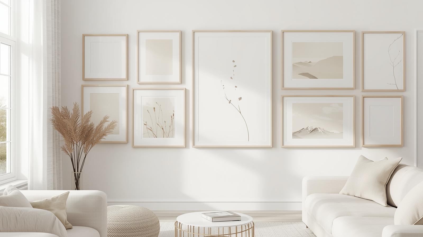 Curating a wall of artwork all within the same color family creates a serene, gallery-like atmosphere that feels cohesive and expansive. Try all-white art on white walls, varying shades of blue, or soft terracotta tones across multiple pieces. When color does not compete for attention, the eye moves freely across the wall, perceiving the space as larger and more unified. Mix textures — oil, watercolor, print — to keep it visually layered without chaos.